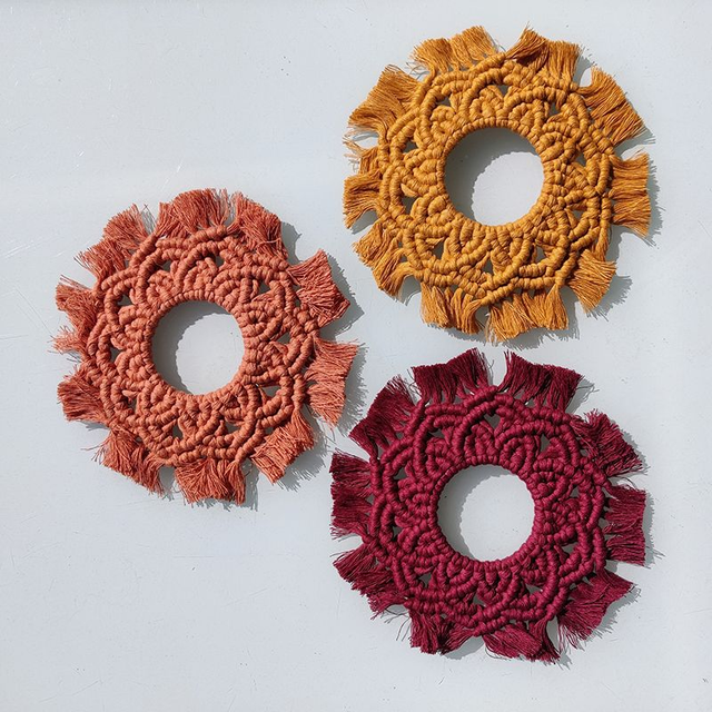 Trois mini-mandalas dans une même teinte pour créer une présence plus marquée et une ambiance cohérente.
